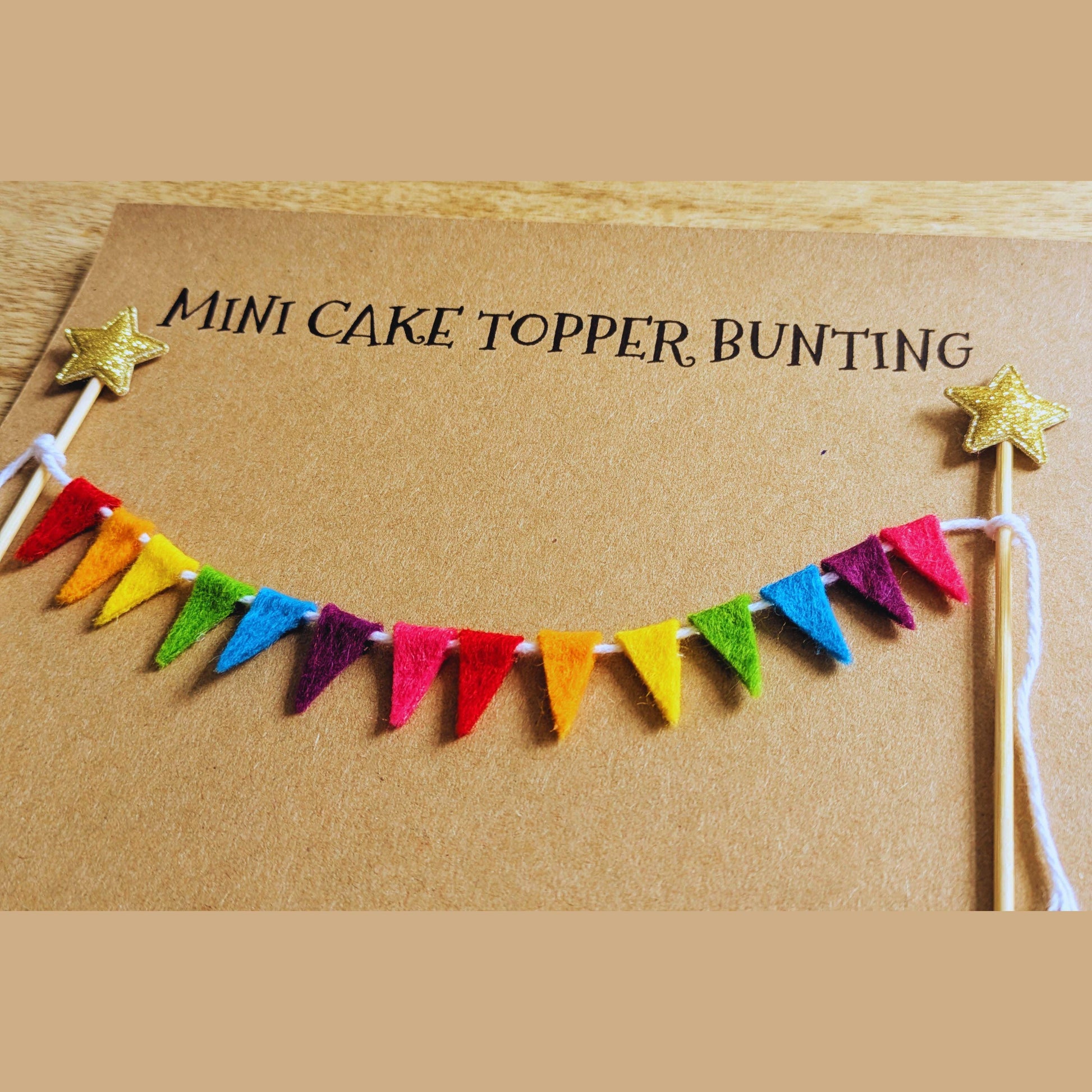 Add the perfect finishing touch to any celebration cake with this bright and cheerful rainbow mini bunting!